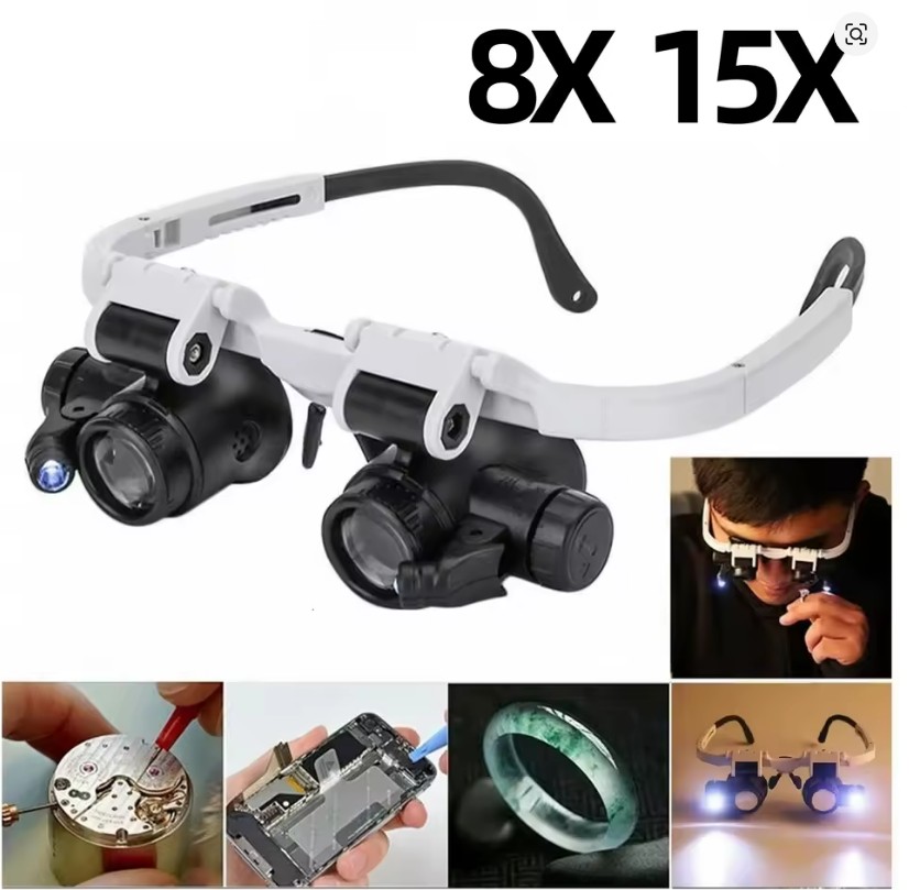 2XLED OCCHIALINI d'ingrandimento fascia d'ingrandimento regolabile 8X 15X