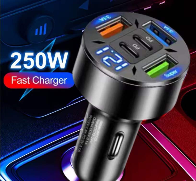 Caricabatteria da auto da 250 W a 5 porte Ricarica rapida PD QC3.0 USB C Adattatore di tipo C