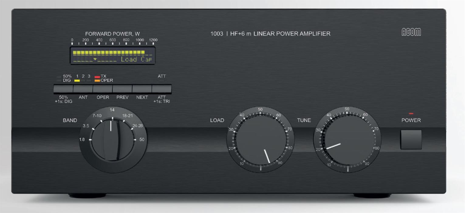 L'ACOM 1003 è un amplificatore lineare autonomo e indipendente che copre tutte le bande radioamatoriali da 1,8 MHz a 54 MHz. Fornisce 1000 W di potenza in uscita PEP o 900 W di portante continua senza limitazioni di modalità operativa, con 50-80 W di potenza in ingresso (dal ricetrasmettitore).