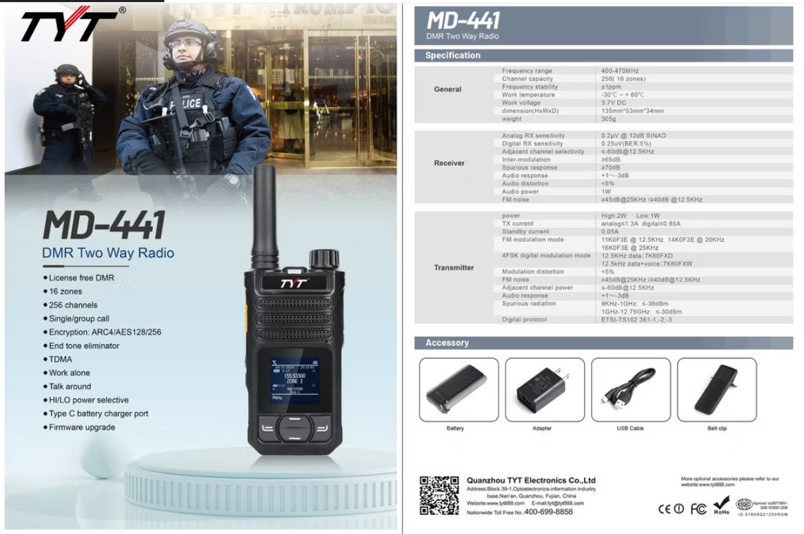 License free DMR RADIO4 zonesEncryptions ARC4 AES128 AES256typeC charger porthigh low power selectiveLow battery alert MD-44164 channelsLCD DisplayAES EncryptionEncrypted CommunicationIP54Frequency Range 400-470MHzChanneL 64Color BlackDimensions133*55*34mmBattery Capacity 2200mAhRadio Type Dmr RadioOperating Voltage 3.7V