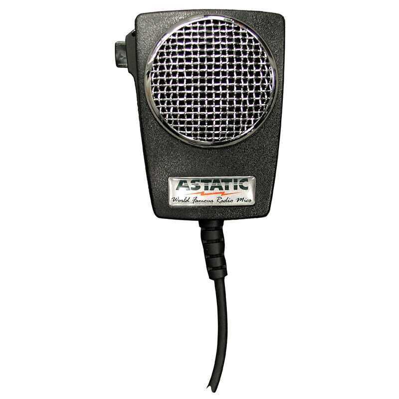 NEW ASTATIC D104M6B amplified ceramic microphone with 4 pin connector. Wired for Cobra, Midland, Galaxy, and Uniden CB radios+. The Astatic D104 microphone is perfect for mobile CB, Amateur AM and SSB operation. The amplified mic provides extra modulation for highest power level.  Rugged construction with chrome plated brass grille screen, volume control and metal hanger for reliable operation. Flexible heavy duty coil extends to 7-1/2Ft. Frequency response 300-5KHz. Output level -44dbm. Output adjustable over 40dB range. 5Kohm impedance. Requires standard 9 volt battery (not included). The classic Astatic microphone provides optimal frequency response and clarity for maximum power.