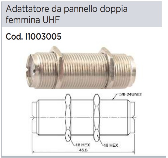 CONNETTORE ADATTATORE DA PANNELLO DOPPIO SO239 CON FERMO A DADI