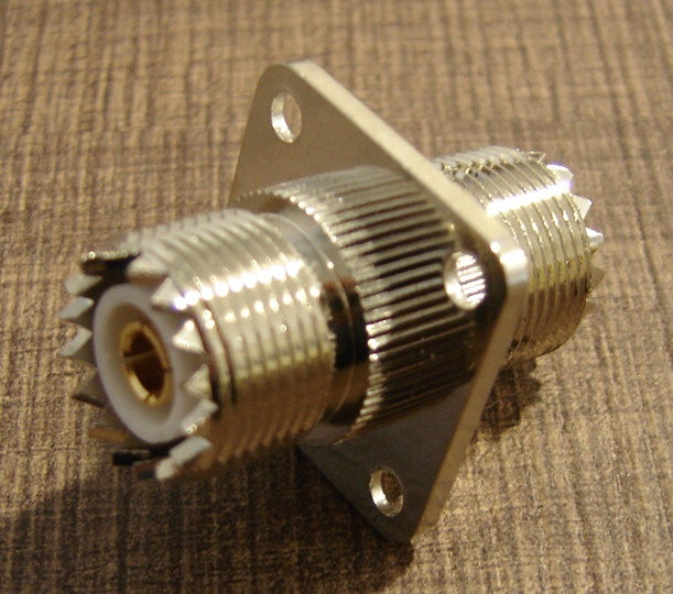 ADATTORE DOPPIA FEMMINA SO-239 (BARILOTTO) DA PANNELLO CON 4 FLANGIA 4 FORIIDEALE PER CREARE SISTEMI DI ATTACCO/DISTACCO ANTENNE SPECIFICHE TECNICHECorpo: ottone nichelatoIsolamento: derlinImpedenza: 50 WGamma di frequenza: 0 - 300 MHzTensione massima applicabile: AC 500VTensione massima applicabile per 1 minuto: AC 1500VResistenza di contatto: 3.0 mW max.Resistenza d'isolamento: 5000 MW min. @ DC 500V