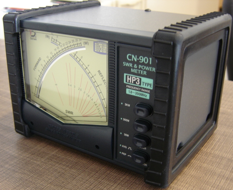 DAIWA CN-901HP31.8 - 200 MHZ CROSS NEEDLE PEP WATTMETER / SWR METER 3000 WATTS UHF FEMALE CONNECTORsostituisce suo predecessore CN-801HP3Frequency: 1.8-200MHzPower Range Forward: 20/200/3kW Accuracy: +/- 10% (at full scale)SWR Detection Sensitivity: 5W minInput/Output Impedence: 50 OHMInput/Output Connectors: SO-239Dimensions & Weight: 6.25 x 4.3 x 4.8 / 2lbs. 3ozs. LightedCross needle movement allows the simultaneous monitoring of forward power, reflected power, and SWR without the need of an extra calibration procedure. New High Power version switchable for 30, 300, or 3000 watt full scale forward watt readings. Built-in lamp. Meter requires external 13.8 VDC source. Supplied with DC power cord.