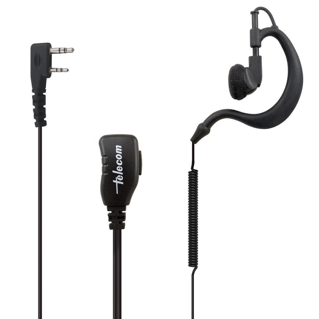 Micro-auricular con PTT de solapa, orejera tipo PY-29 y cable negro rizado.